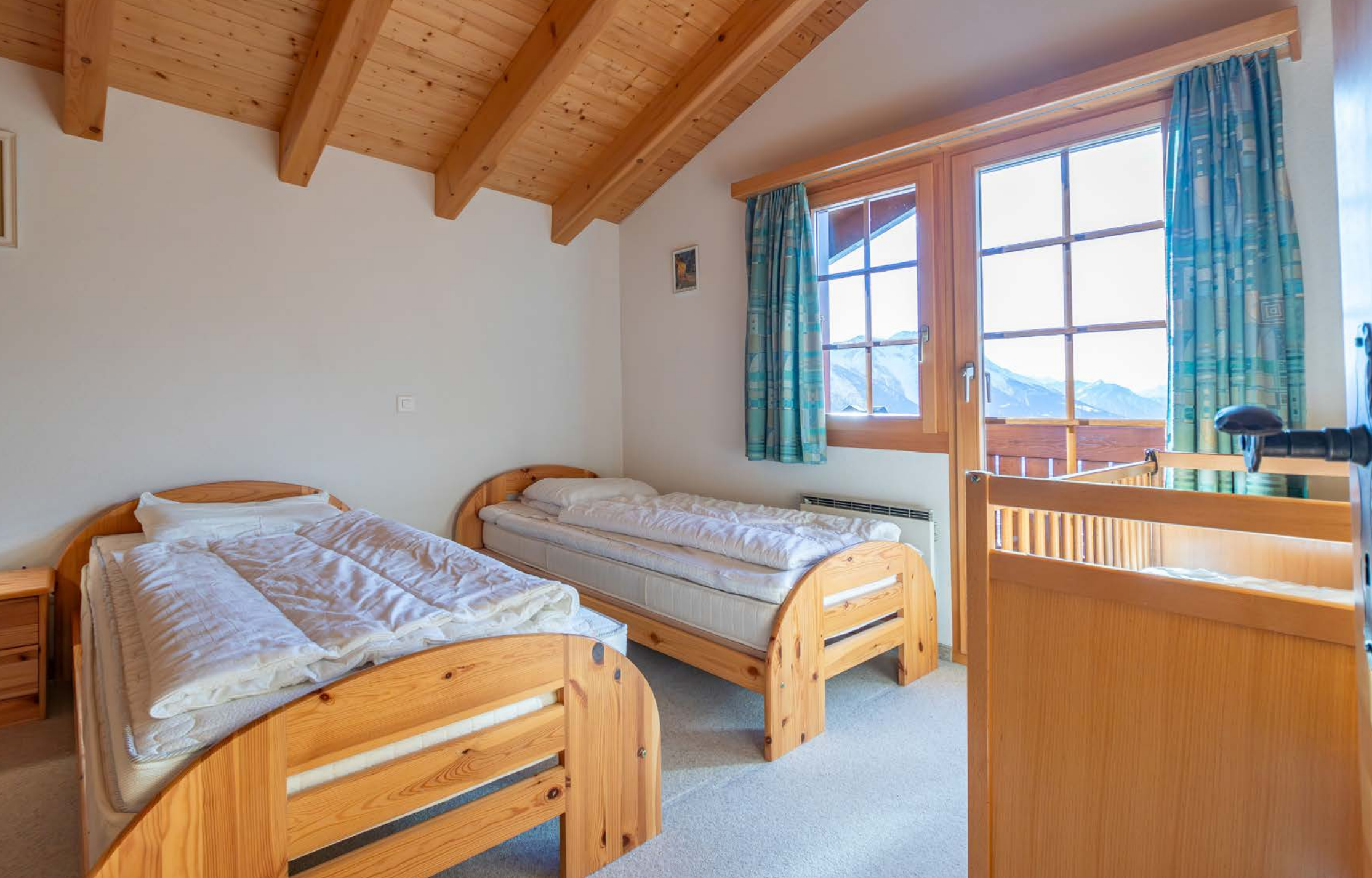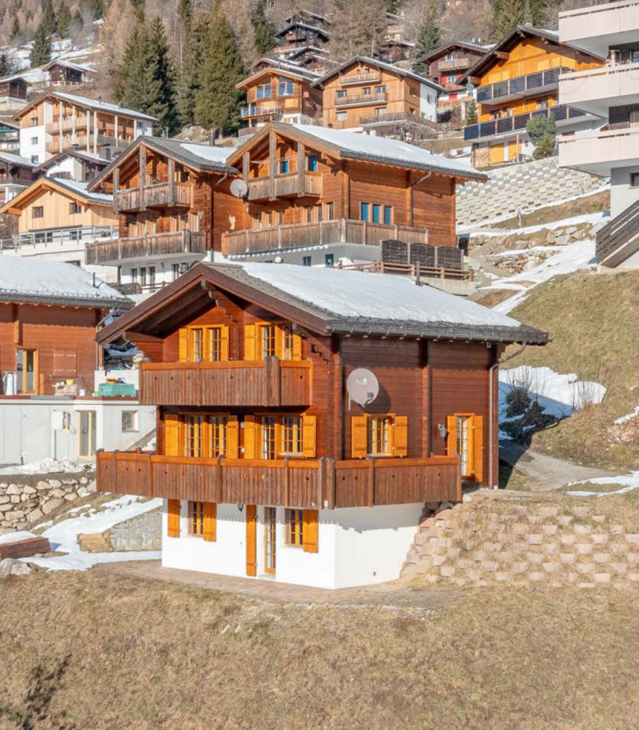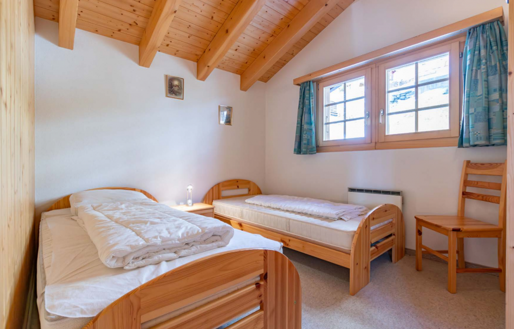 Das Chalet Charis in Bellwald bietet Platz für bis zu 8 Personen – ideal für Familien oder Gruppen. Vier gemütliche Schlafzimmer mit je zwei Betten, eine voll ausgestattete Küche und ein großzügiger Wohnbereich mit Kamin schaffen ein behagliches Zuhause in den Bergen. Auf dem Balkon genießt du einen herrlichen Panoramablick über das Goms.